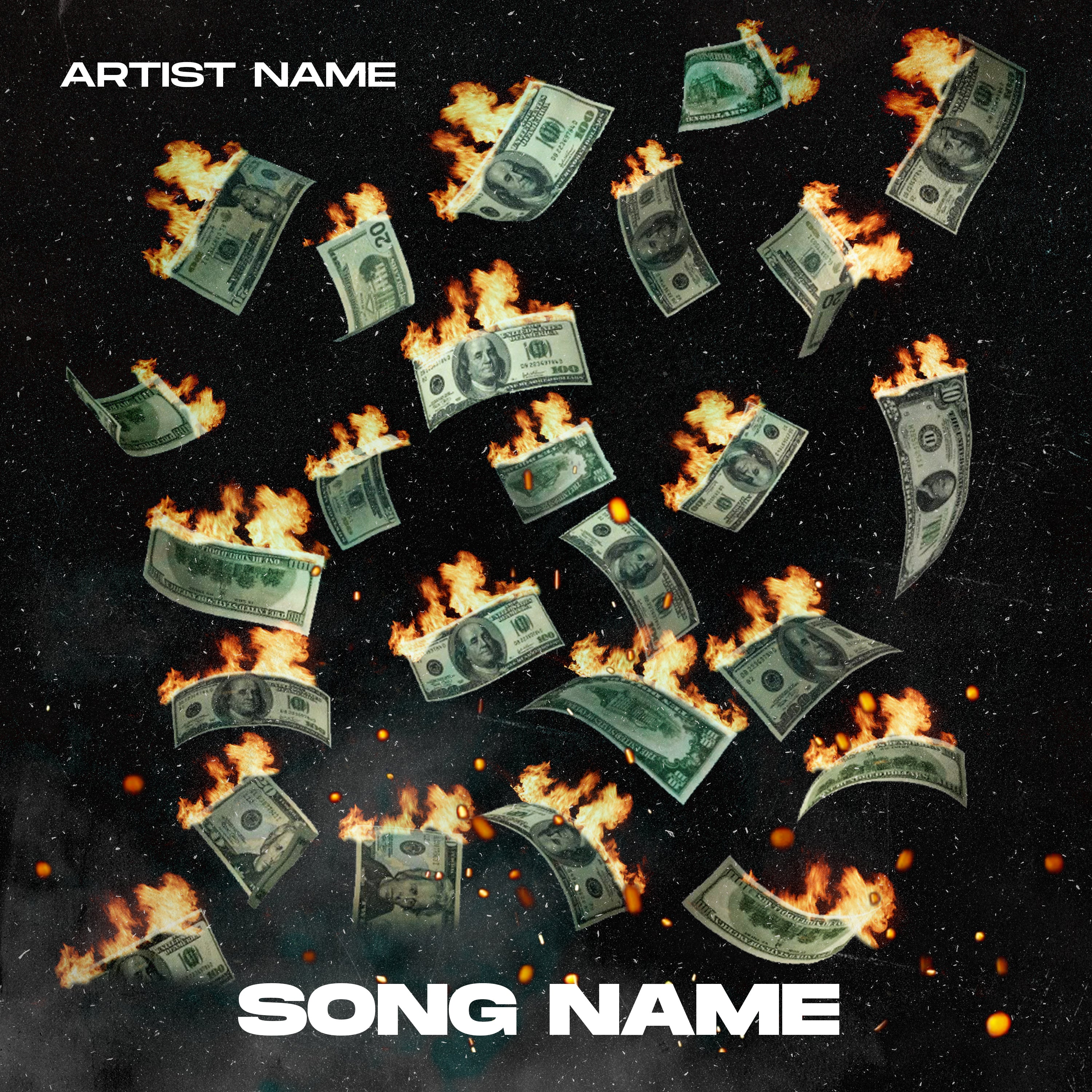 A vivid and impactful cover art featuring burning dollar bills against a dark background conveys themes of wealth, power, and the volatile nature of success, suitable for bold hip-hop artists, rappers, or any musician looking to make a strong statement with their music.