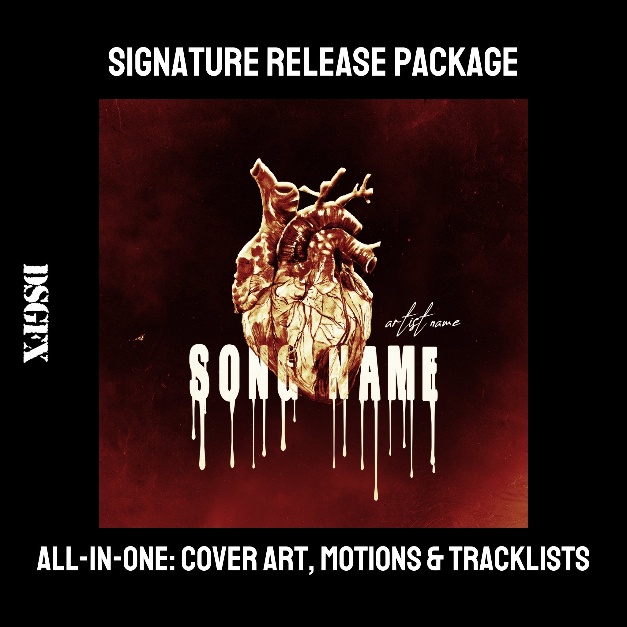 A DSGFX signature cover art music release package provides you with a premium package that gives your single or album campaign the exact impression that you are looking to make.