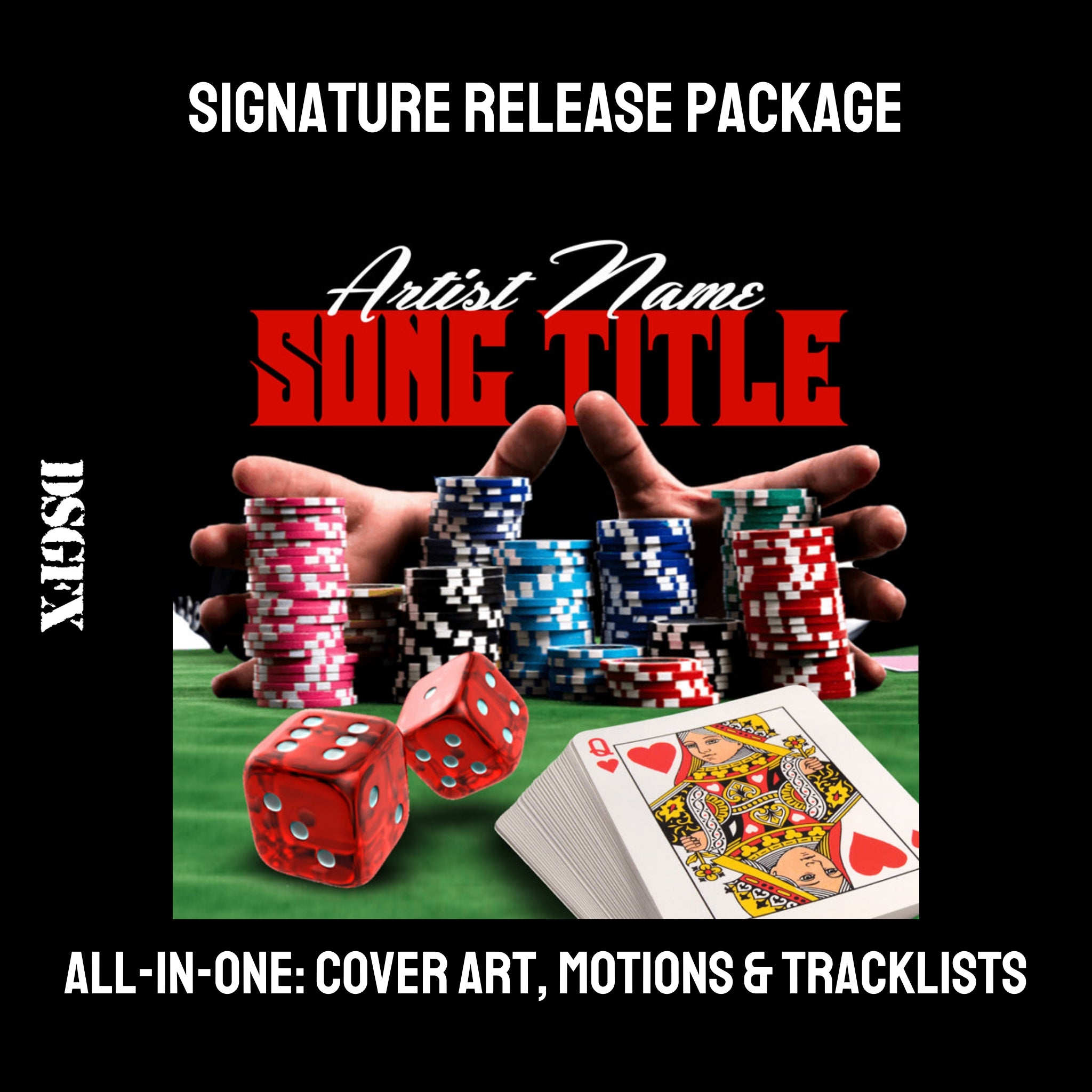 A DSGFX signature cover art music release package provides you with a premium package that gives your single or album campaign the exact impression that you are looking to make.