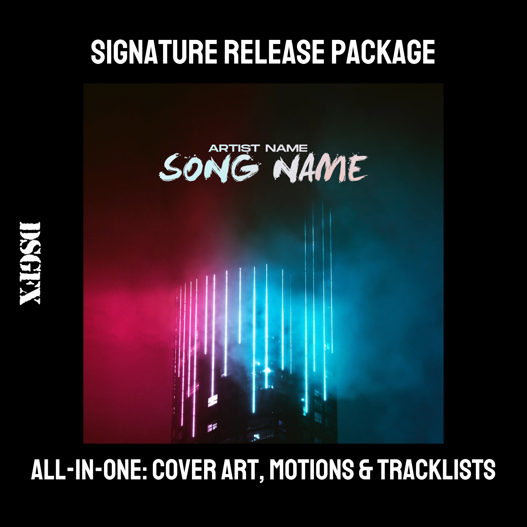 A DSGFX signature cover art music release package provides you with a premium package that gives your single or album campaign the exact impression that you are looking to make.