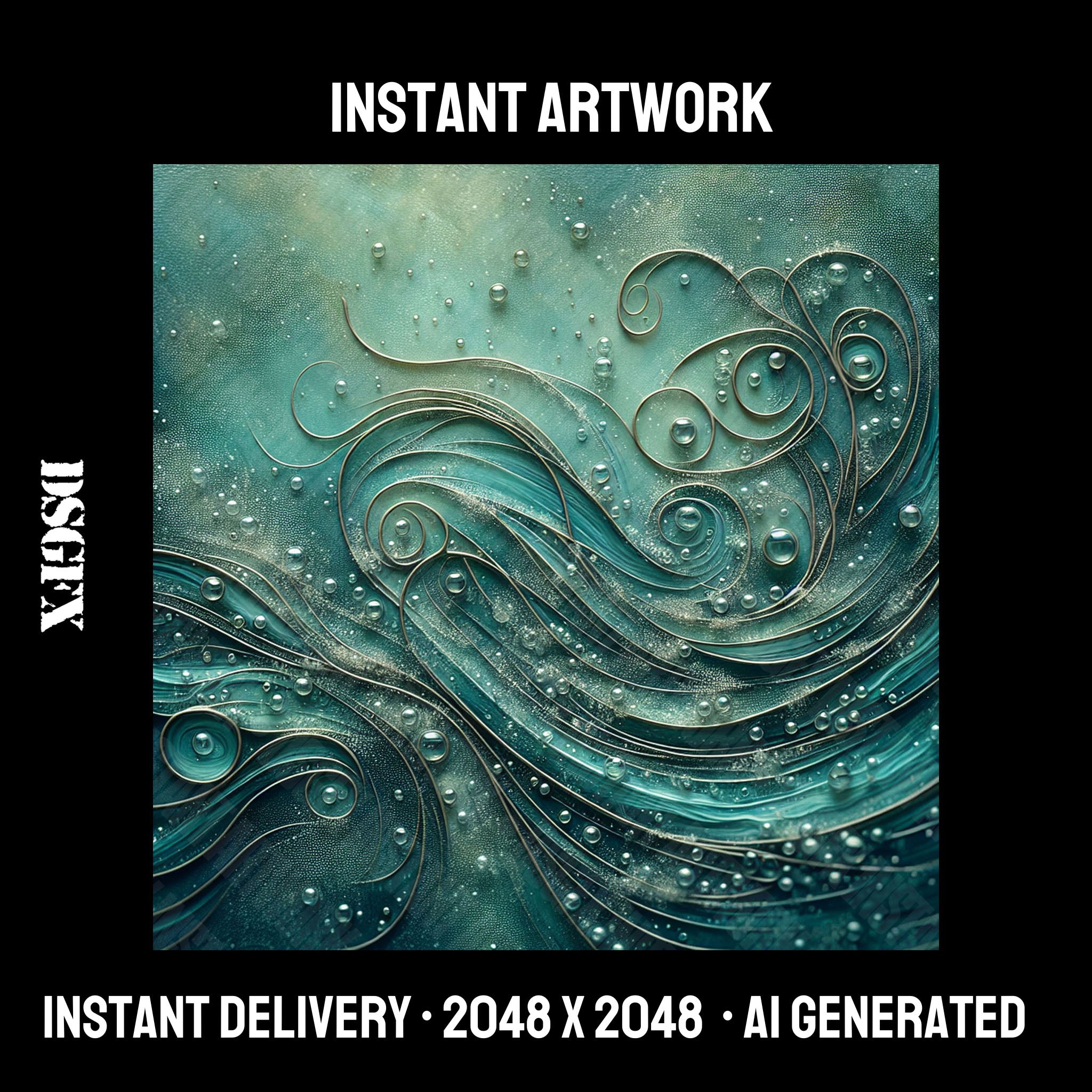 This image features a mystic amalgamation of cerulean tones and abstract swirls, adorned with glistening droplets throughout. The varying shades of blue suggest a depth and moodiness ideal for evoking emotion and storytelling in music. Its dreamlike quality makes it a versatile choice for genres such as psychedelic rock, atmospheric hip-hop, or soulful R&B. The organic flow and ornate details can also resonate with alternative or indie artists looking to convey a sense of mystery and introspection.