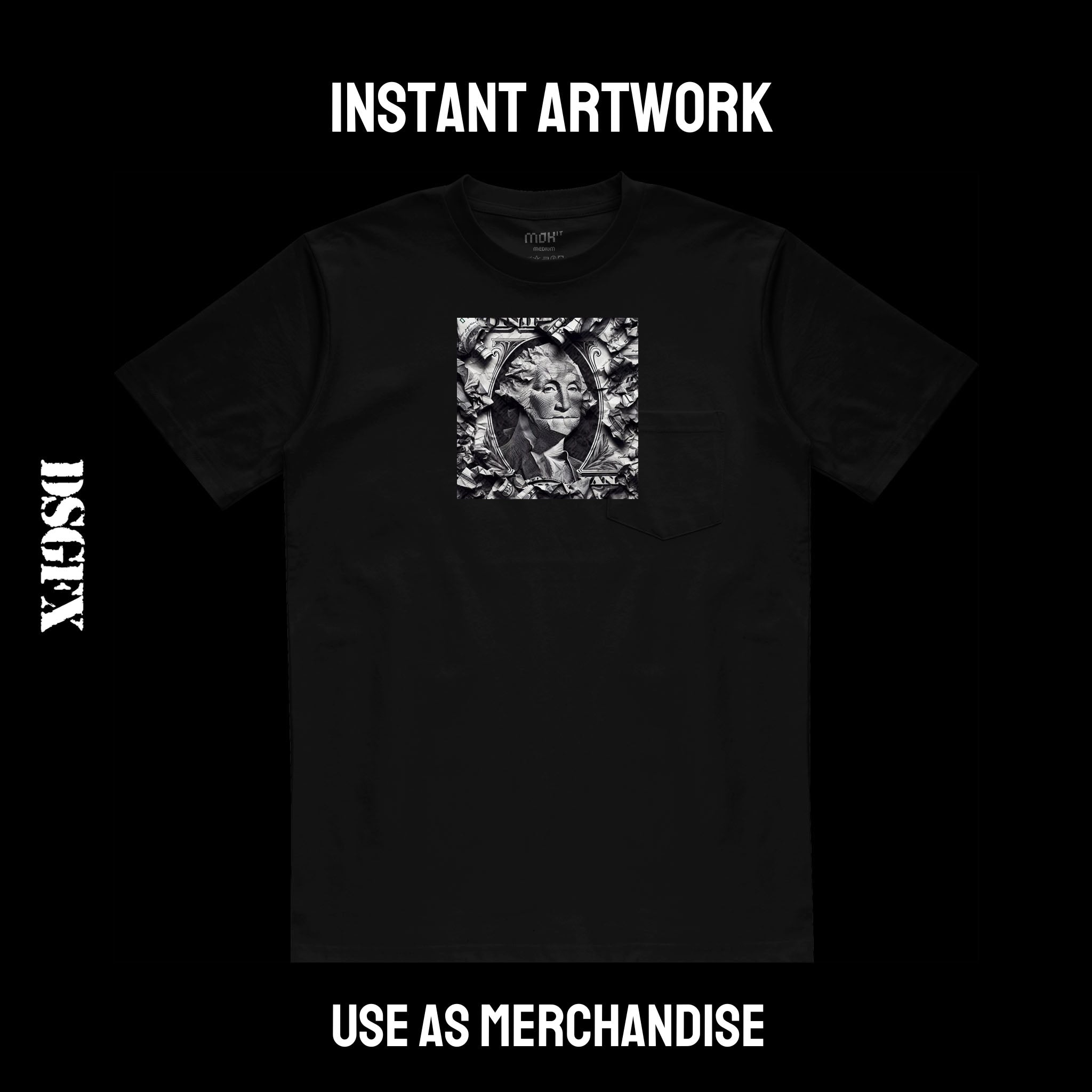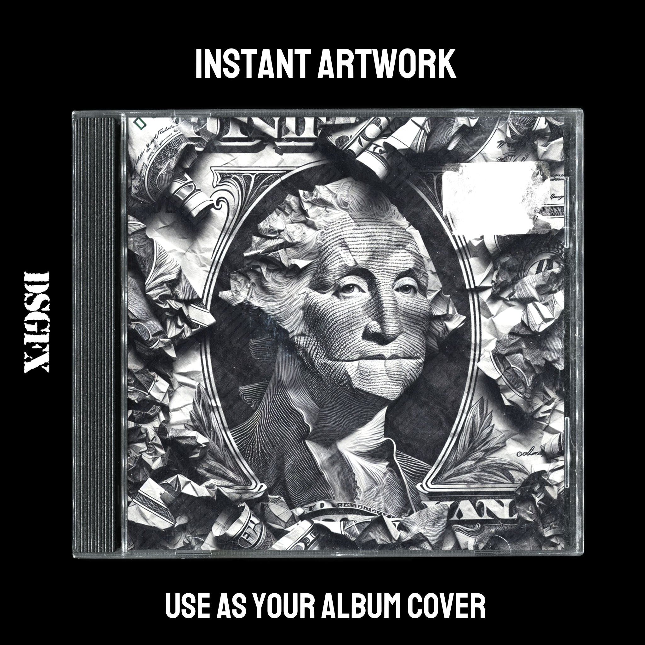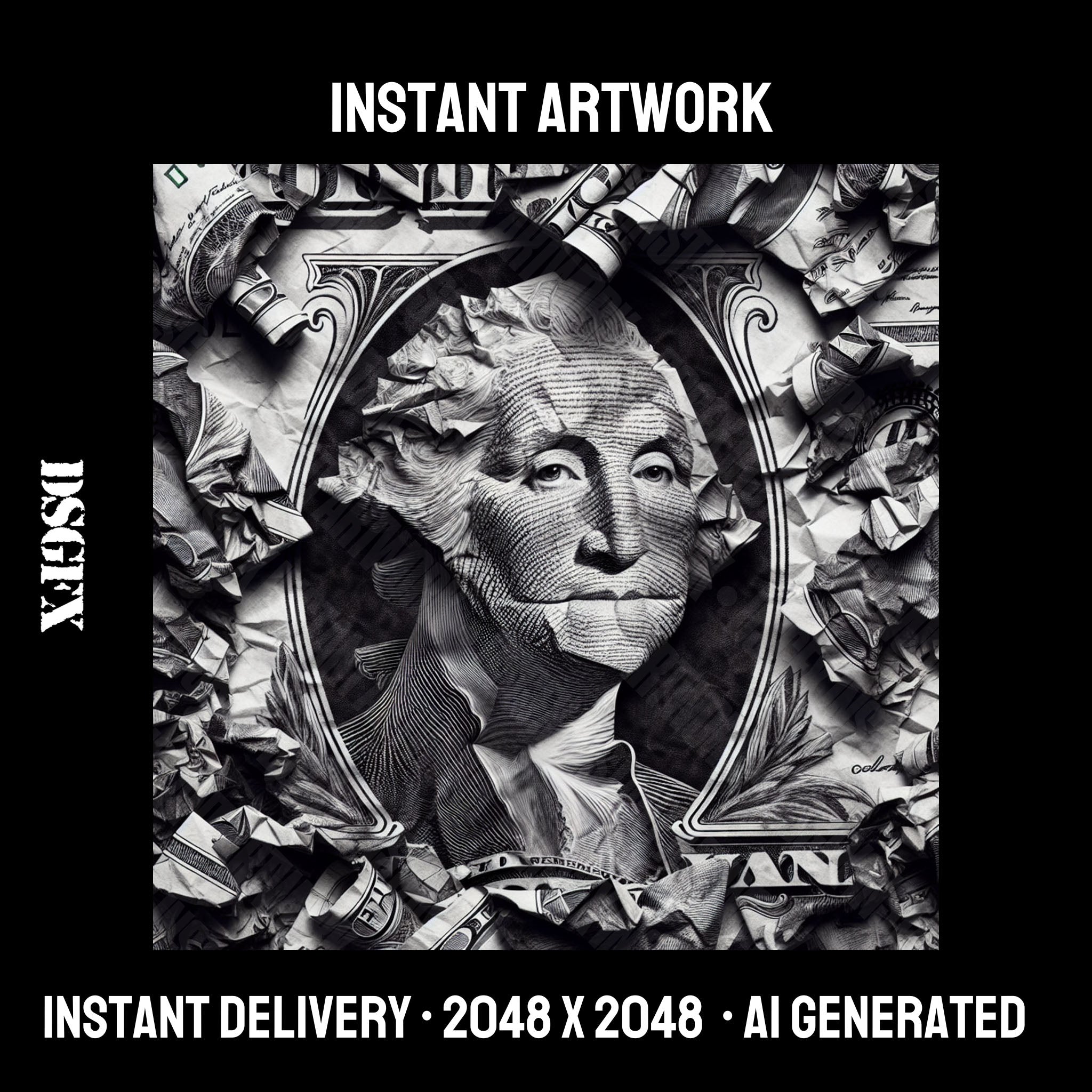 This striking monochrome visual features the visage of George Washington intricately folded into a canvas of currency, symbolizing wealth, power, and the complexities of success. The sharply contrasting shades and textured folds create a dynamic and commanding presence, resonating with urban vibes and the hustle of life, making it an ideal choice for hip hop artists, R&B vocalists, and rock bands looking to project a message of ambition and economic commentary.