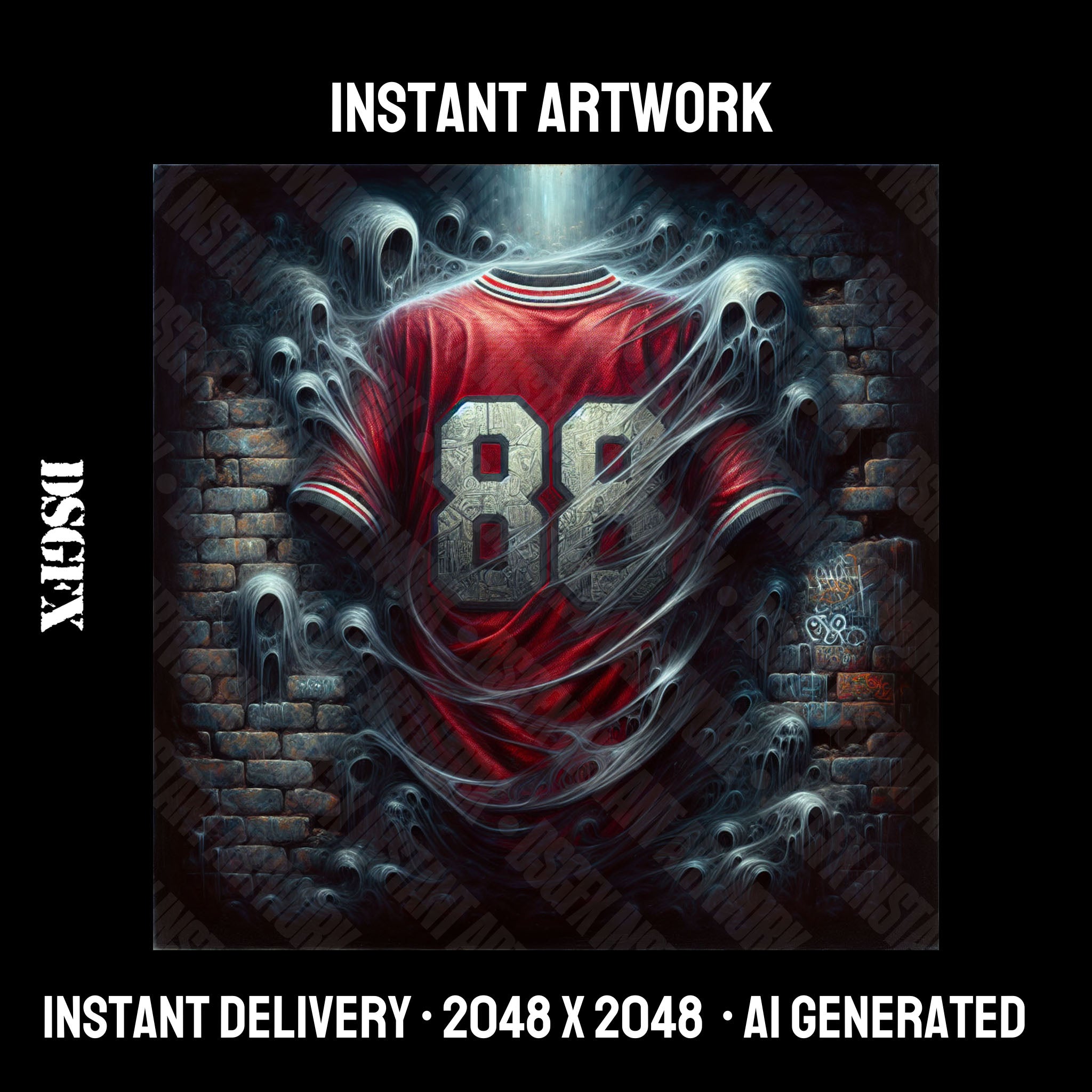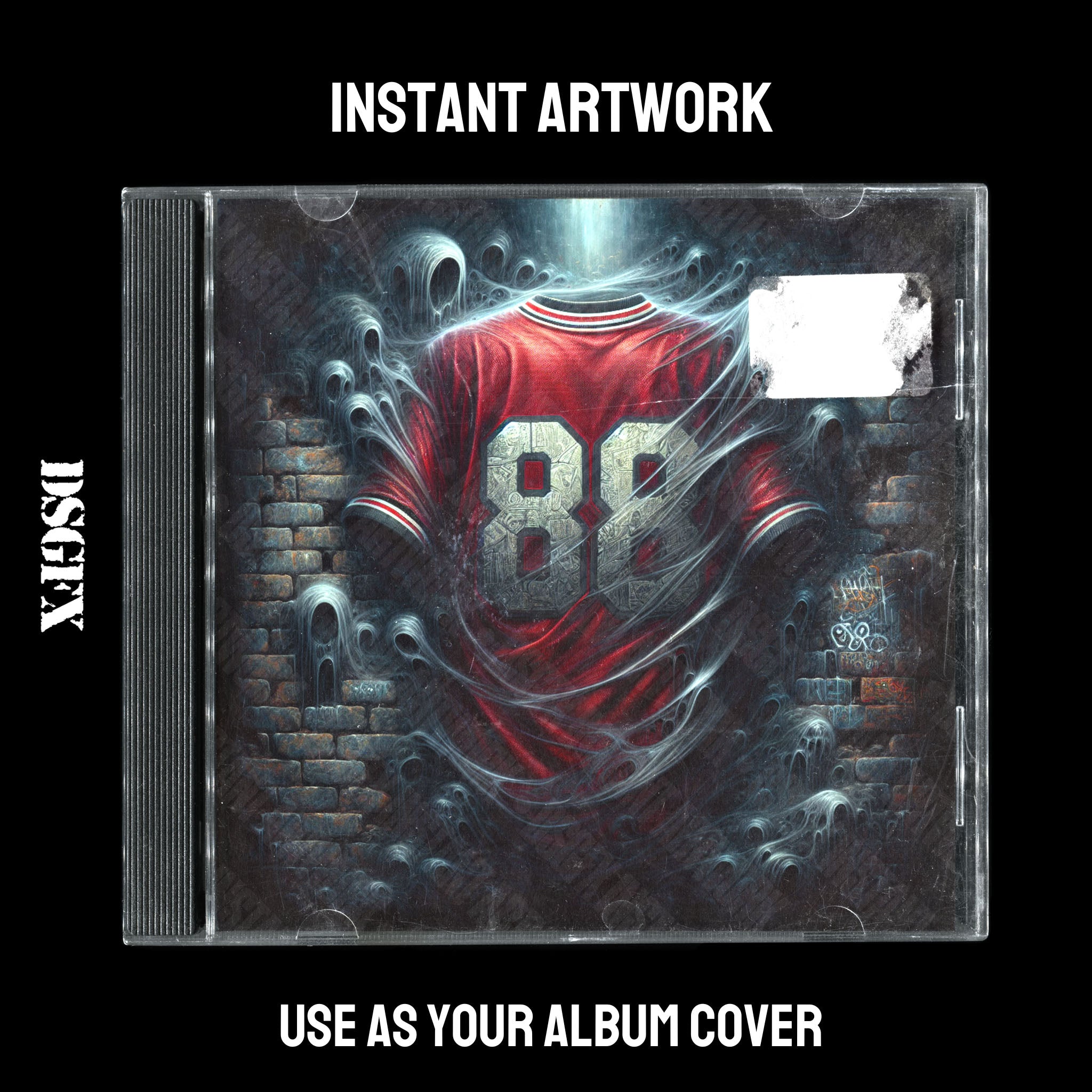 Dynamic album cover art featuring a dramatically rendered sports jersey, number 88, disintegrating into abstract smoke and energy against a brooding, brick-wall backdrop. This piece exudes a sense of transformation and intensity, ideal for hip hop, rap, and urban genres looking to convey a powerful, edgy, and spirited vibe.
