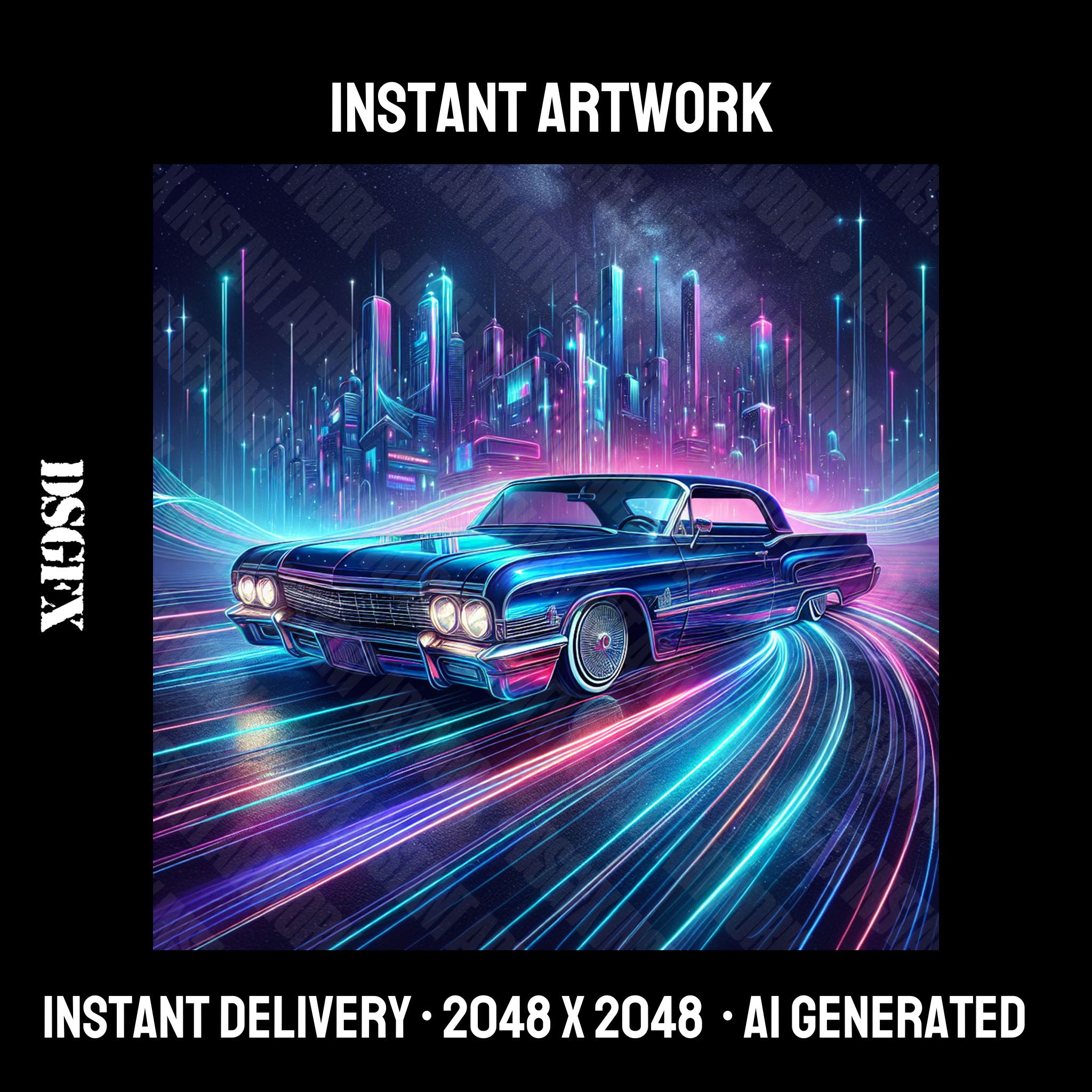 Instant artwork is AI generated artwork generated and curated by Dontsleepgfx. You can use artwork for your music, merchandise and any commercial use case outlined in our terms.