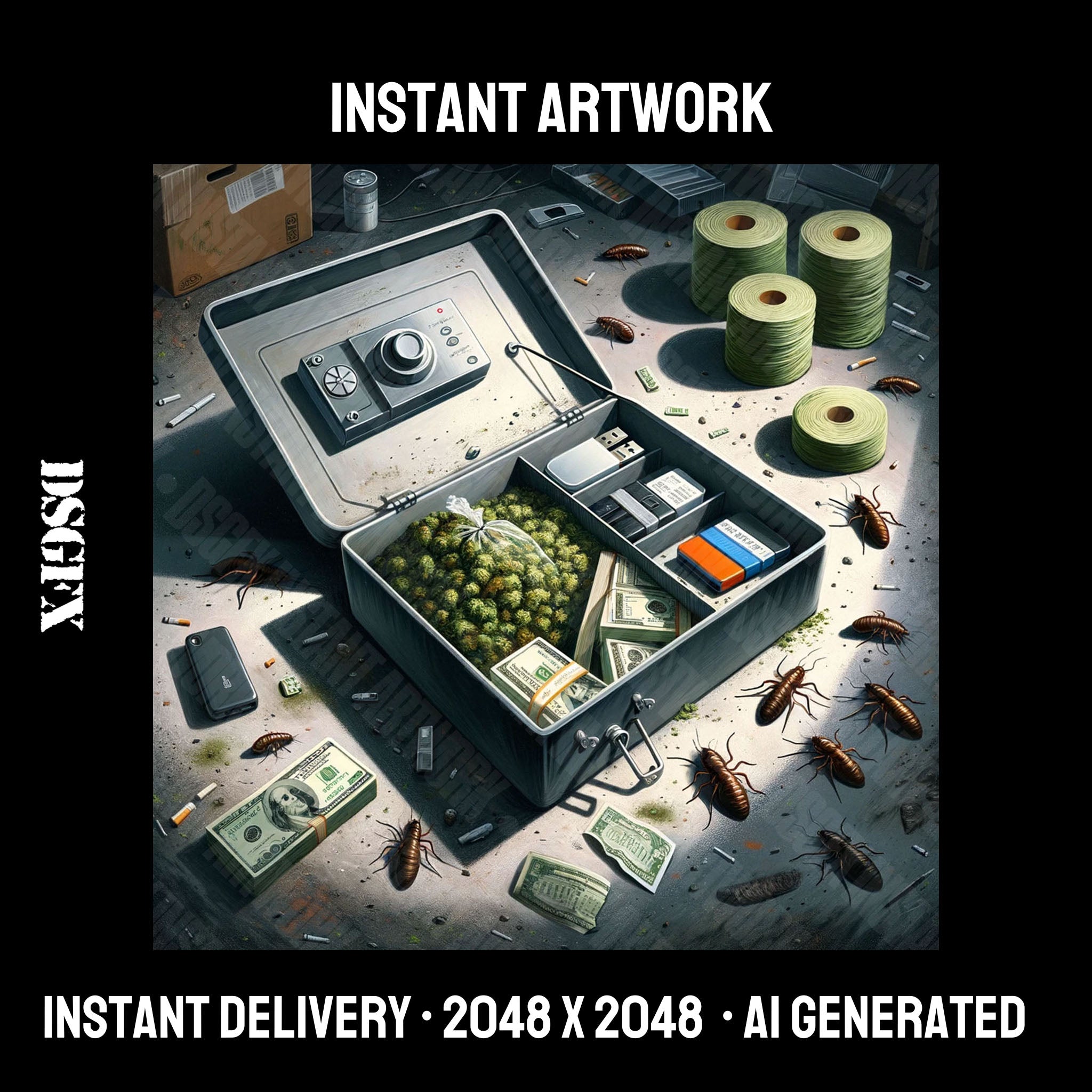 Artwork can be used for music, merchandise, and website. This art is generated by Dalle-3. Edited & upscaled by DSGFX.