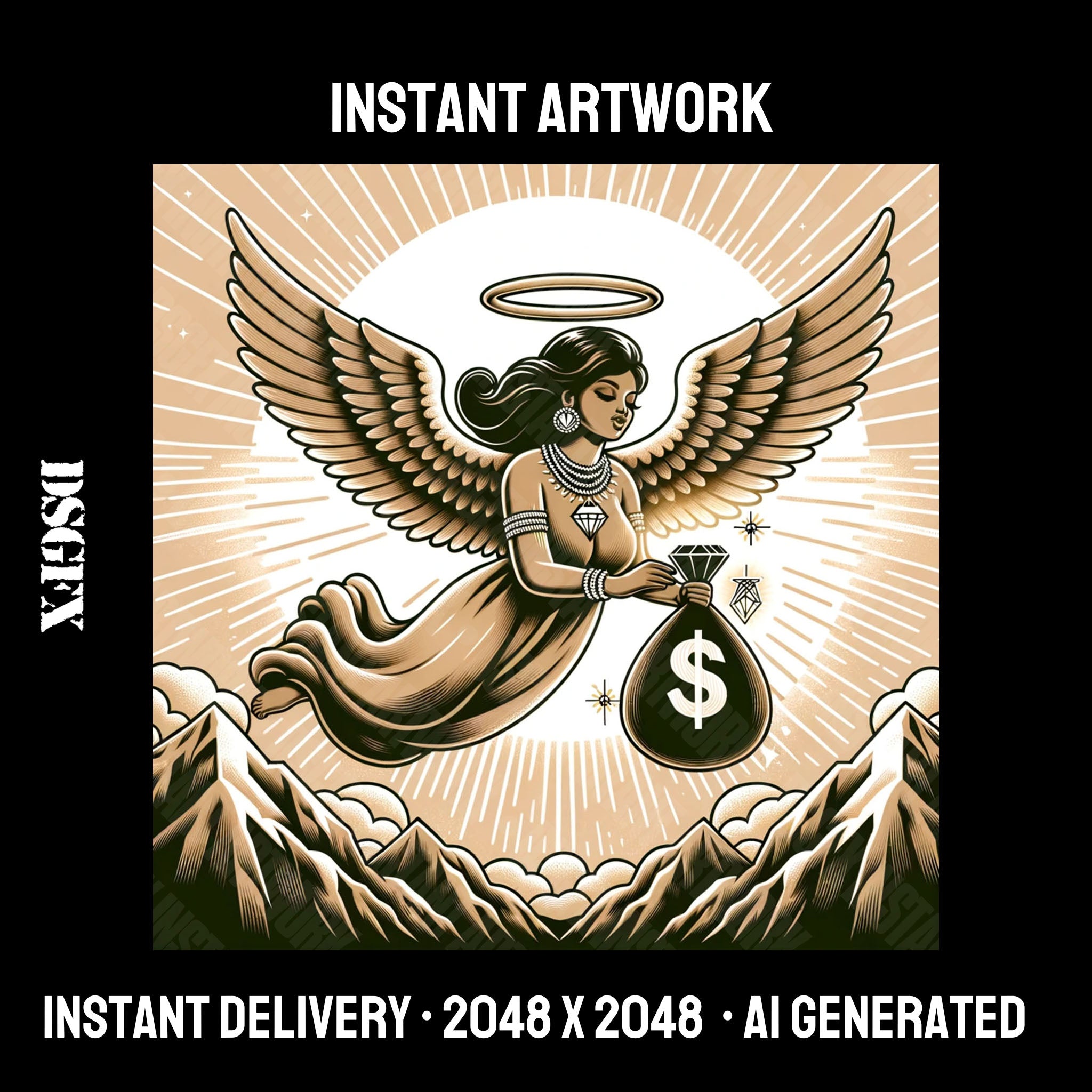 Artwork can be used for music, merchandise, and website. This art is generated by Dalle-3. Edited & upscaled by DSGFX.