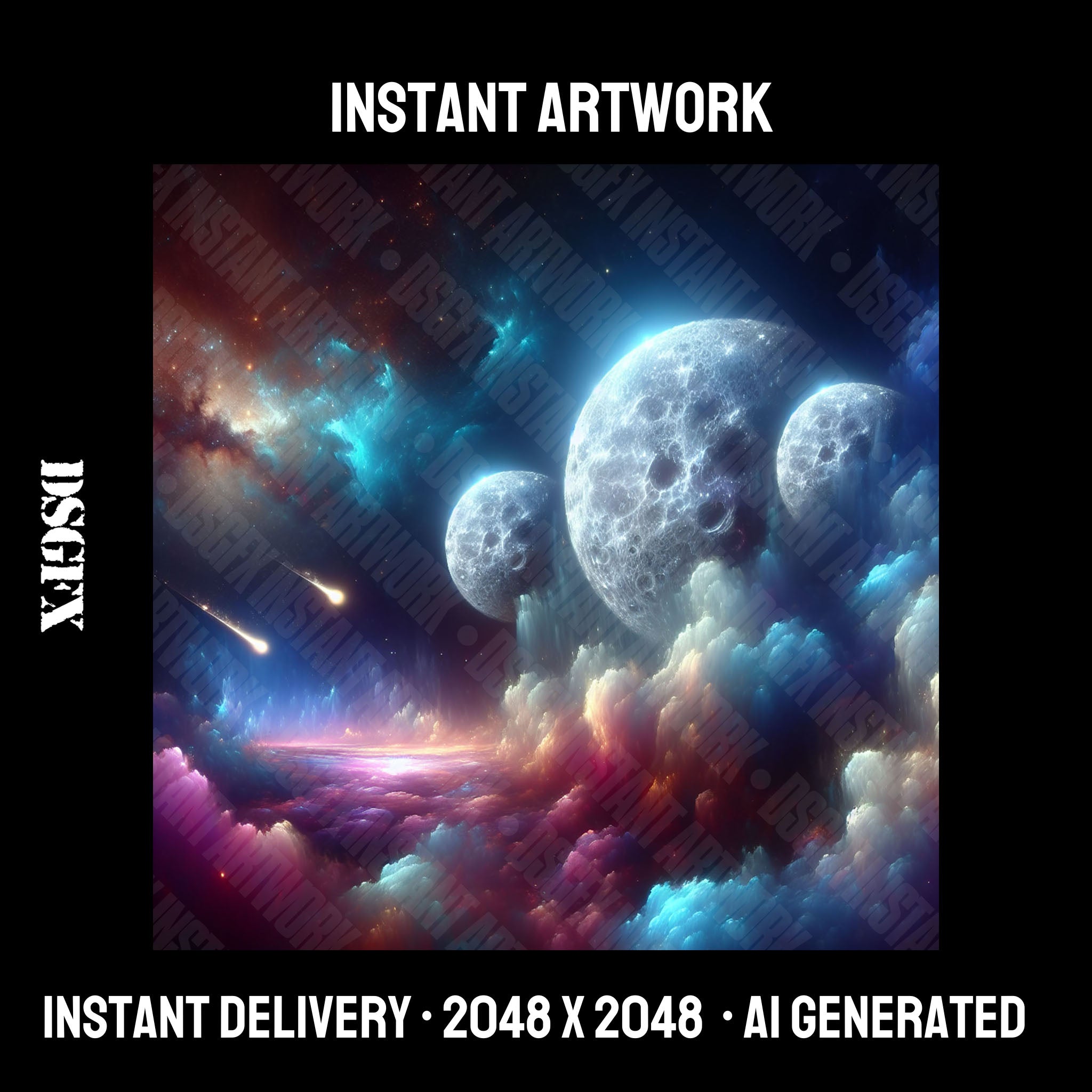 Instant artwork is AI generated artwork generated and curated by Dontsleepgfx. You can use artwork for your music, merchandise and any commercial use case outlined in our terms.