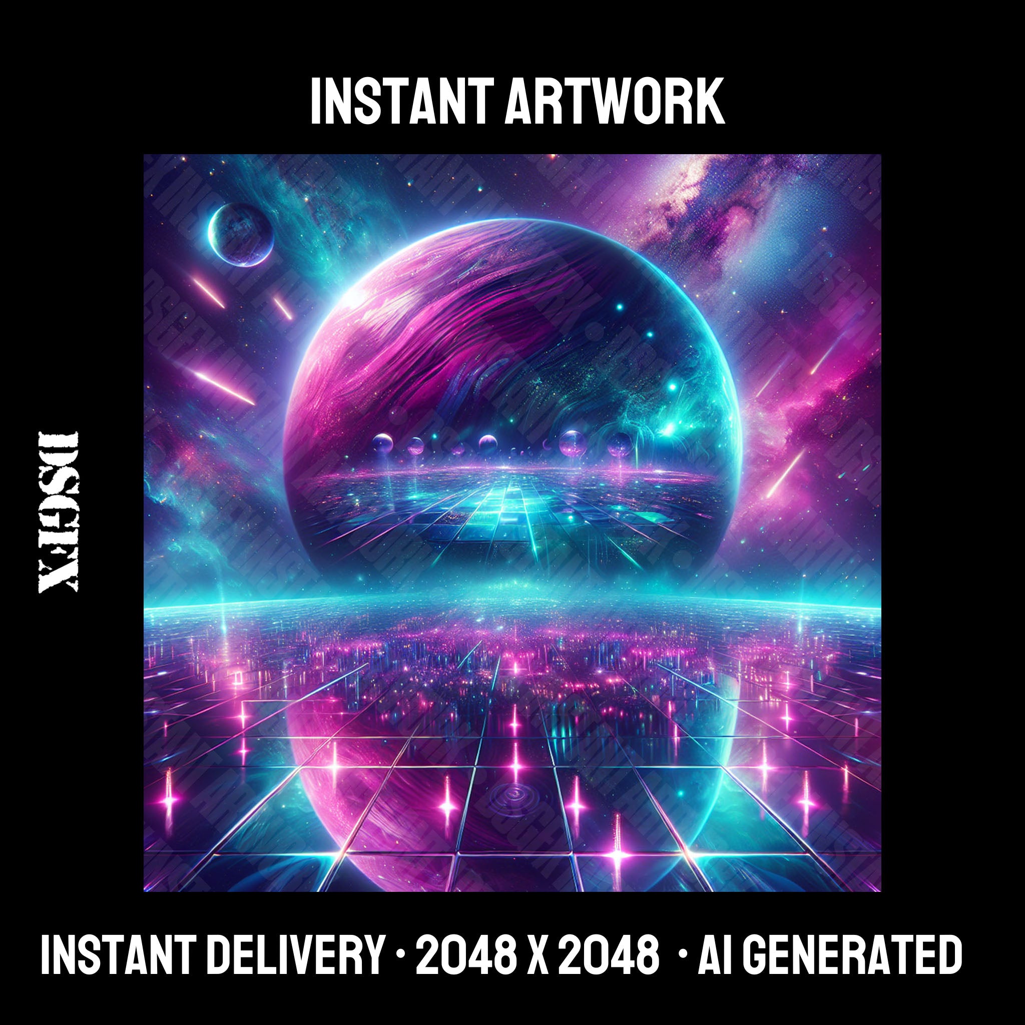 Instant artwork is AI generated artwork generated and curated by Dontsleepgfx. You can use artwork for your music, merchandise and any commercial use case outlined in our terms.