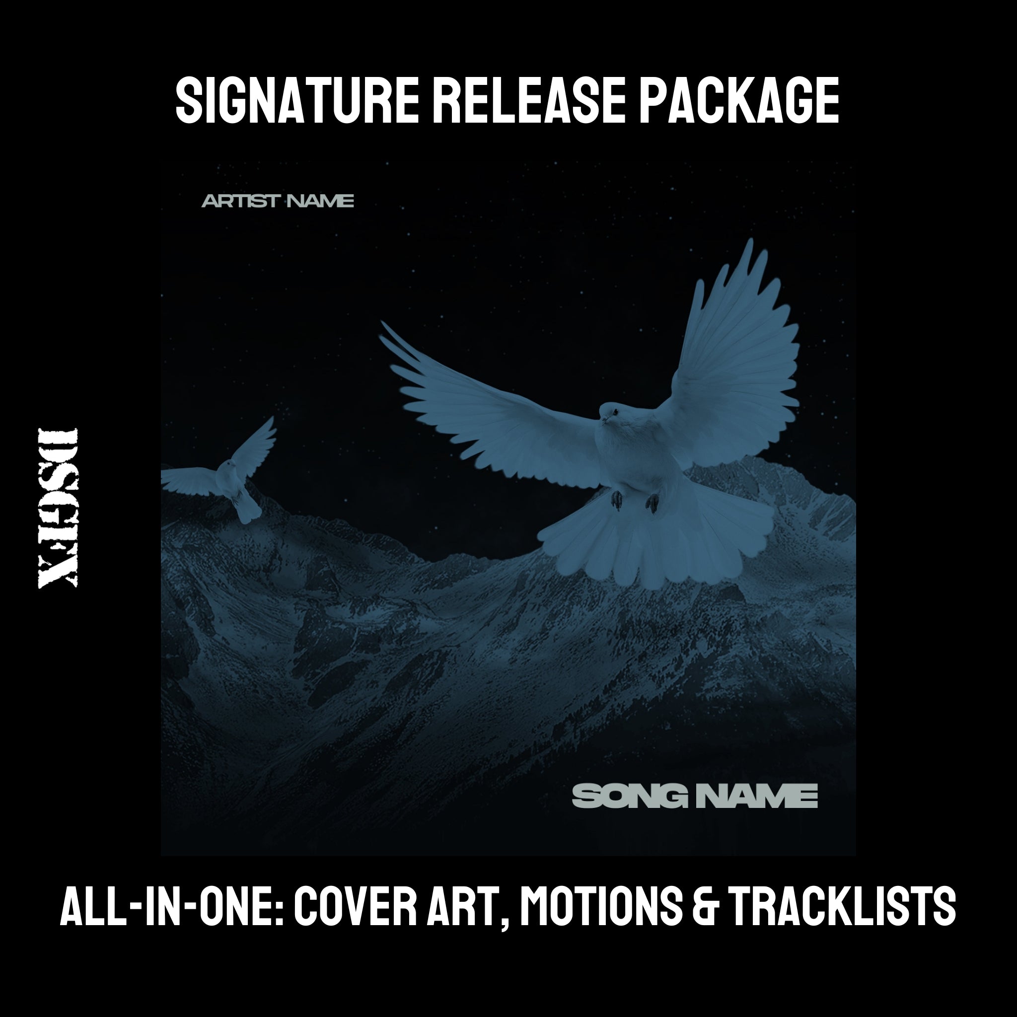 A DSGFX signature cover art music release package provides you with a premium package that gives your single or album campaign the exact impression that you are looking to make.