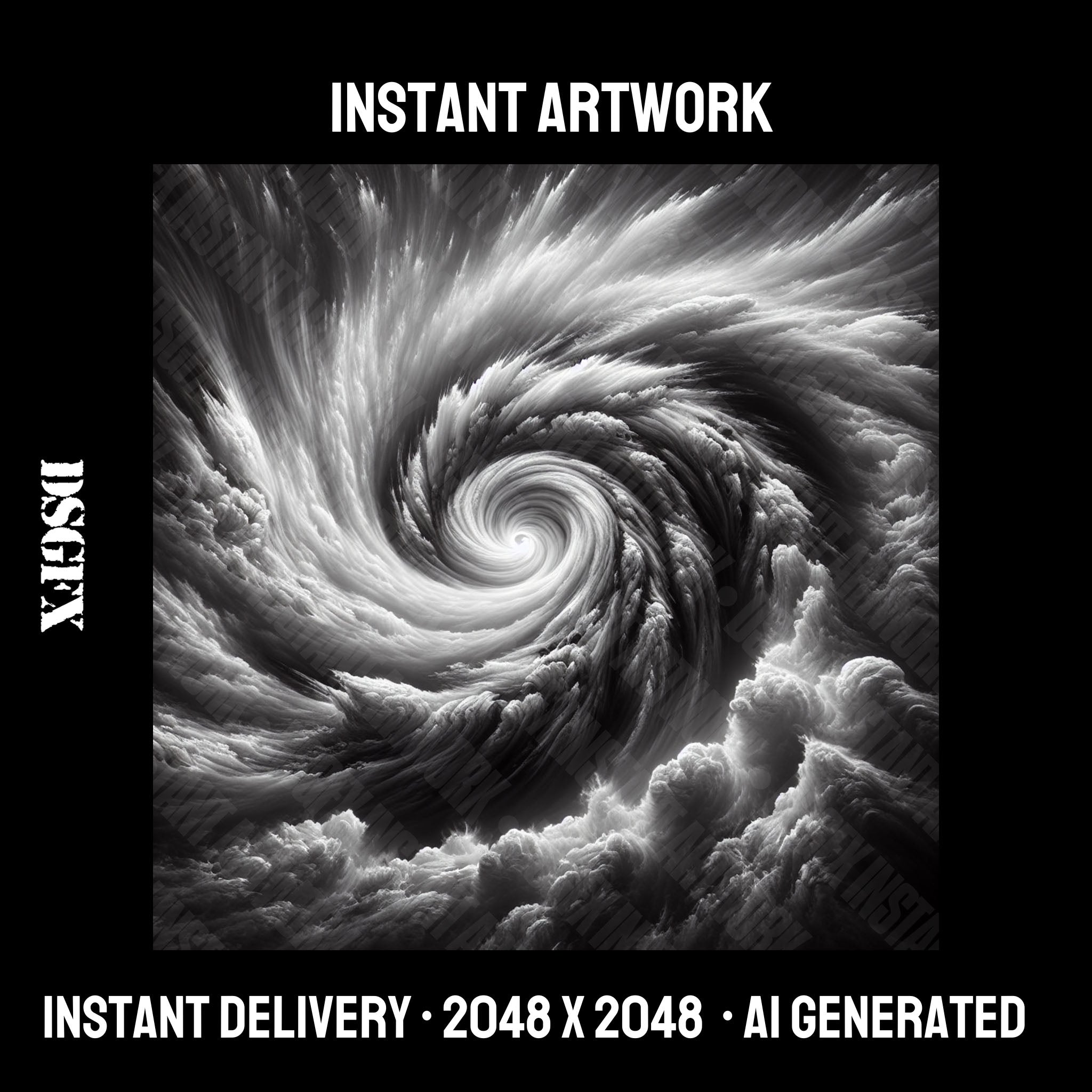 This dramatic black and white imagery captures the intensity and motion of a swirling vortex. The grayscale palette provides a versatile backdrop for artists looking to convey depth, contrast, or a powerful, stirring message through their music. Ideal for rock, hip-hop, and electronic genres seeking dynamic and captivating visuals to connect with a bold and energetic audience.